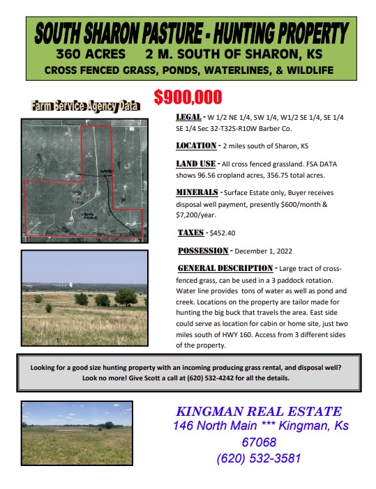 Scott Sparks, Broker - 620-532-4242 Nancy Milford, Salesperson/Appraiser - 620-491-0774 Lexi Miller, Salesperson -- 620-532-5204